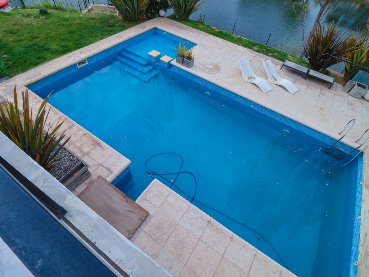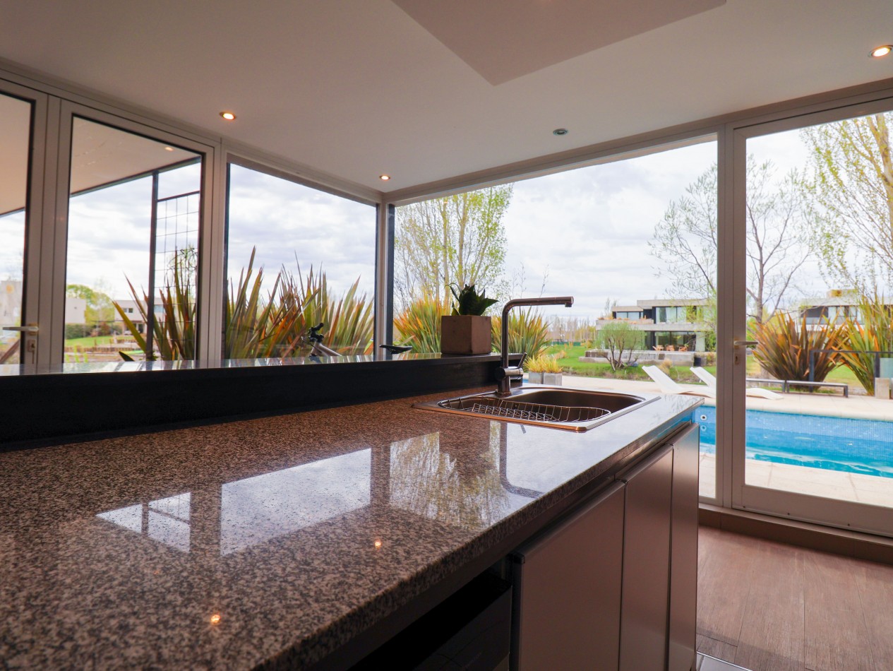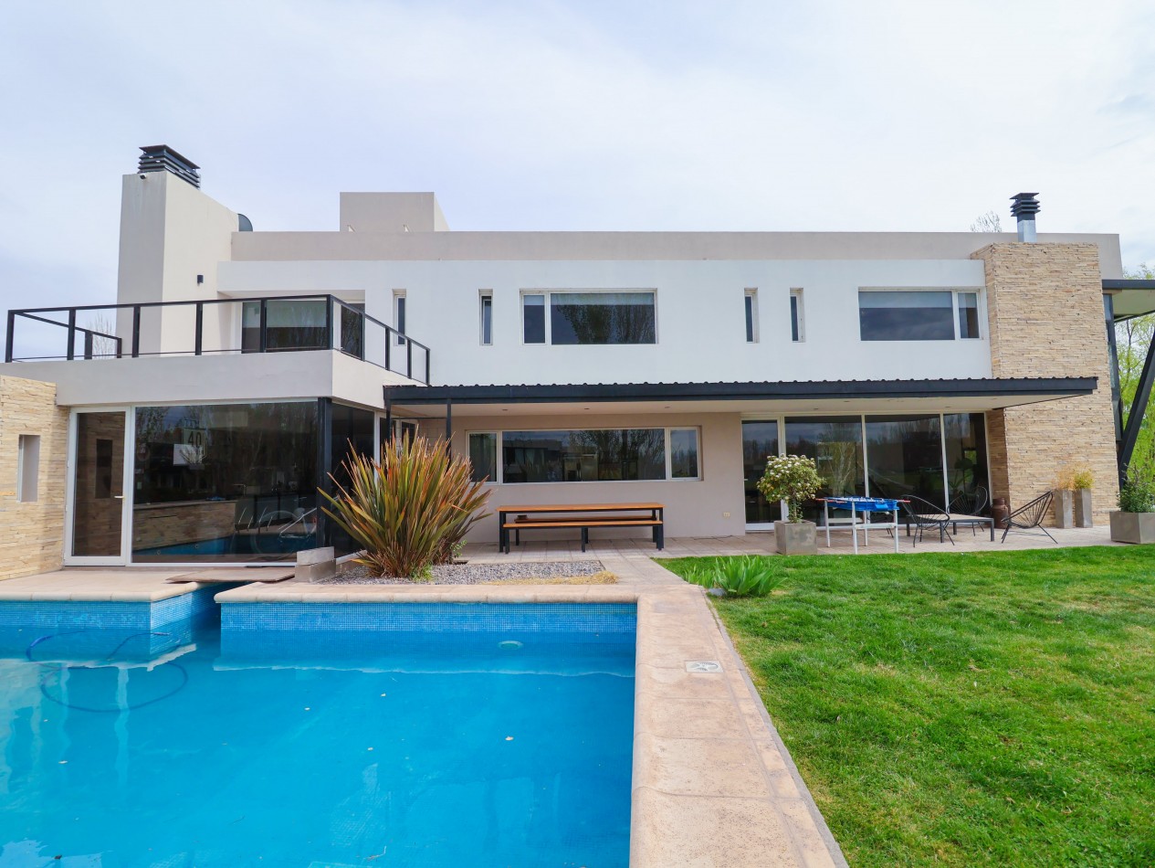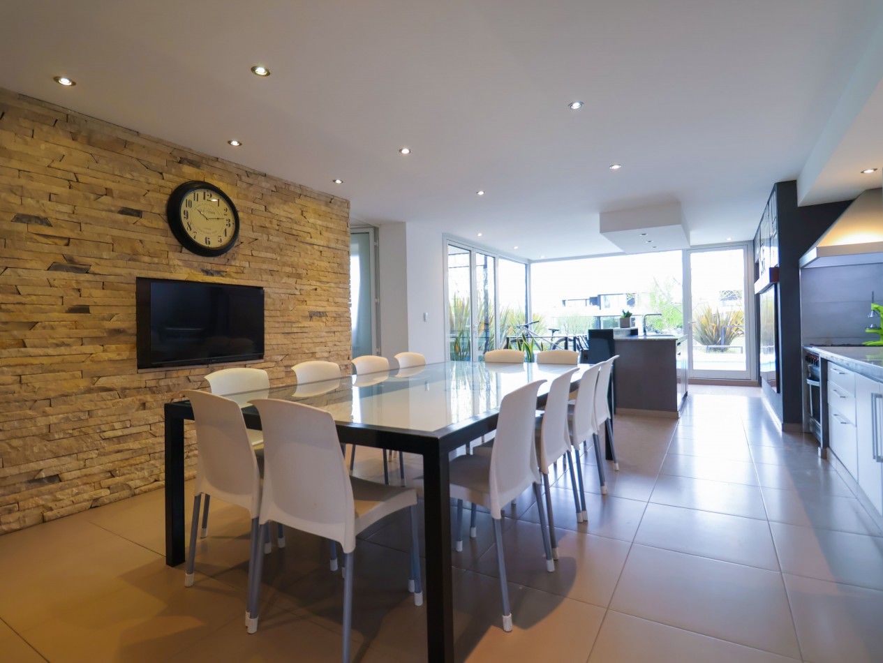 Exteriores: Jardín trasero con asador, pileta climatizada y amplia cochera para 2 vehículos.