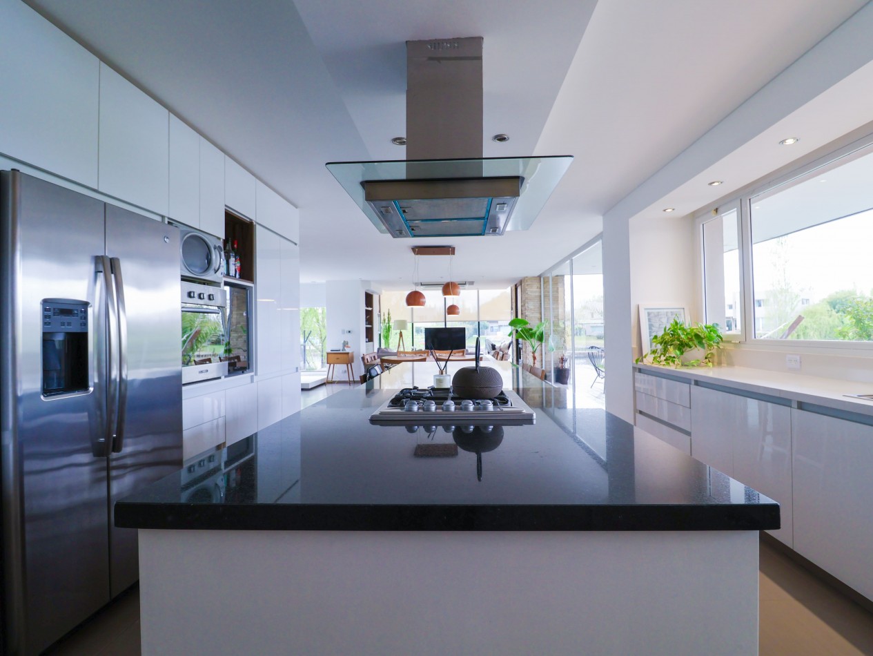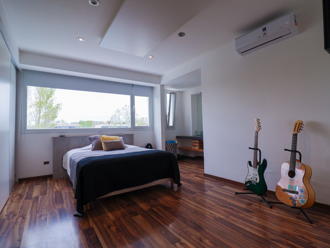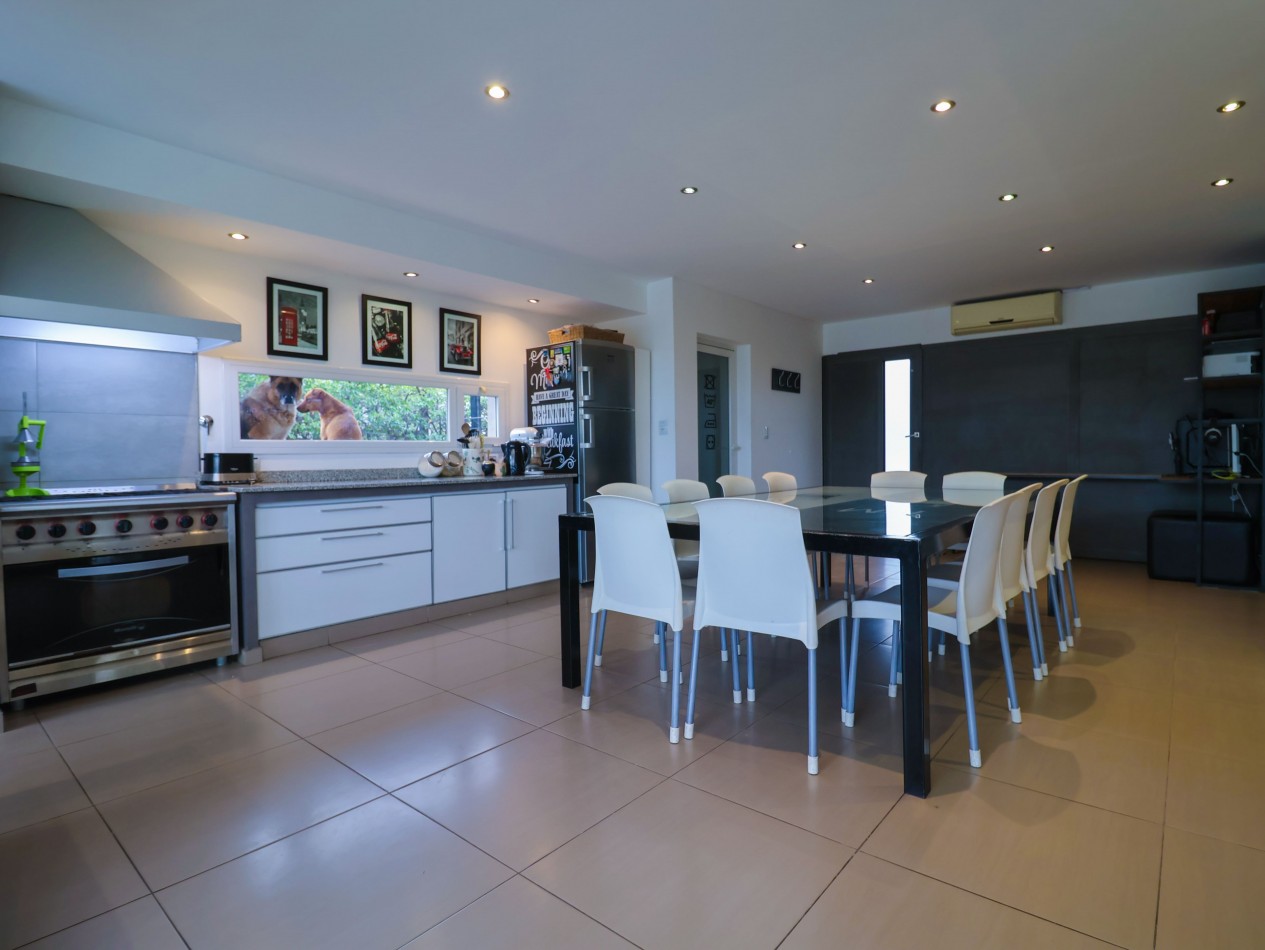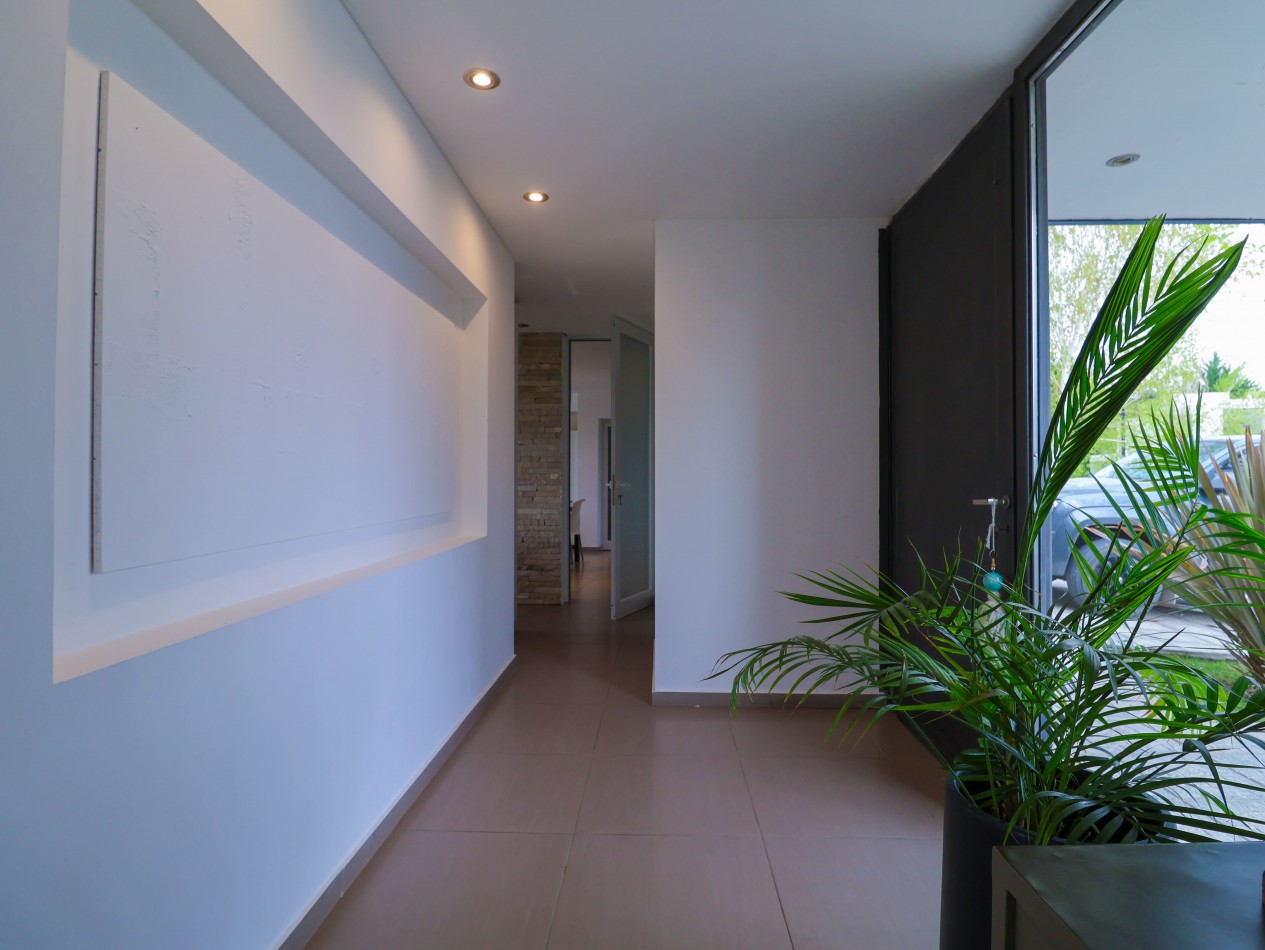 Exteriores: Jardín trasero con asador, pileta climatizada y amplia cochera para 2 vehículos.