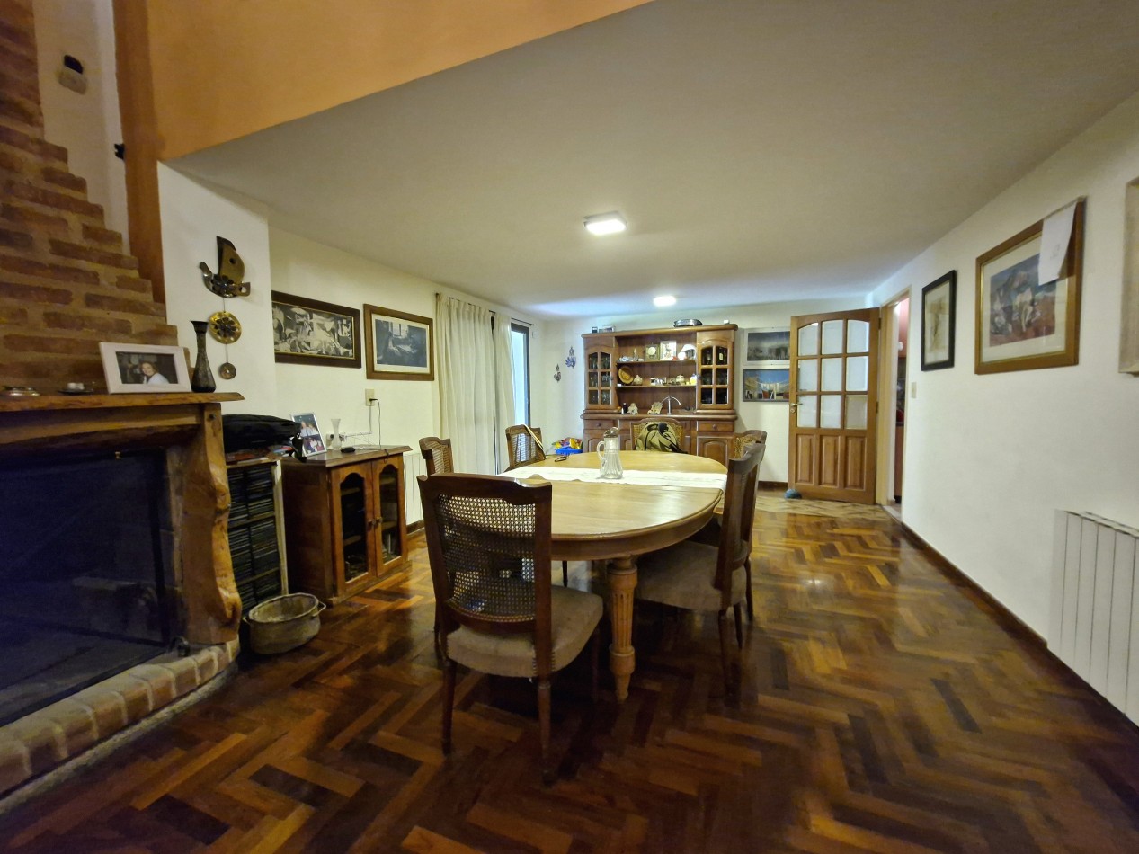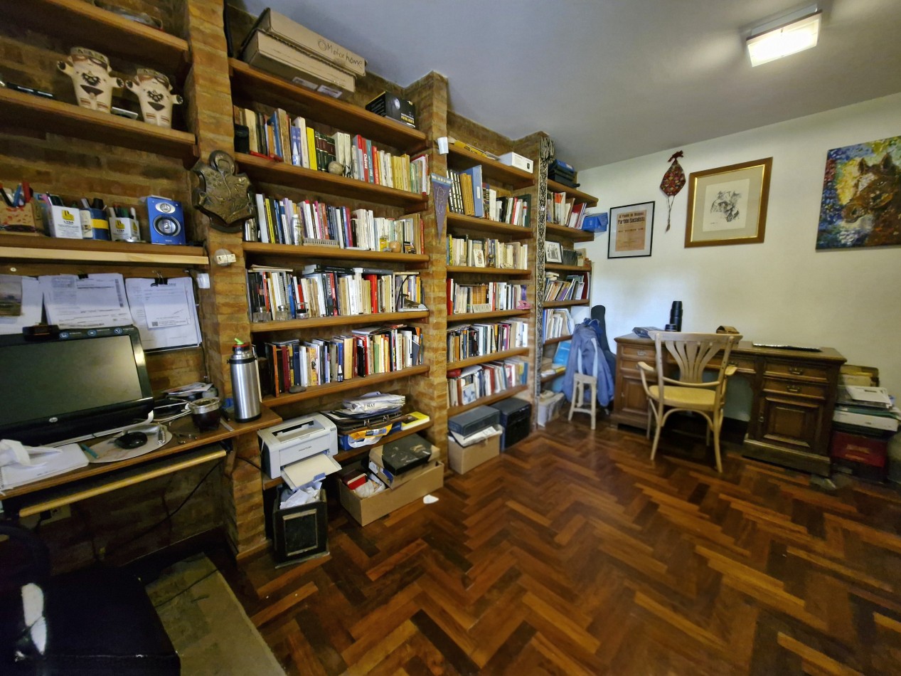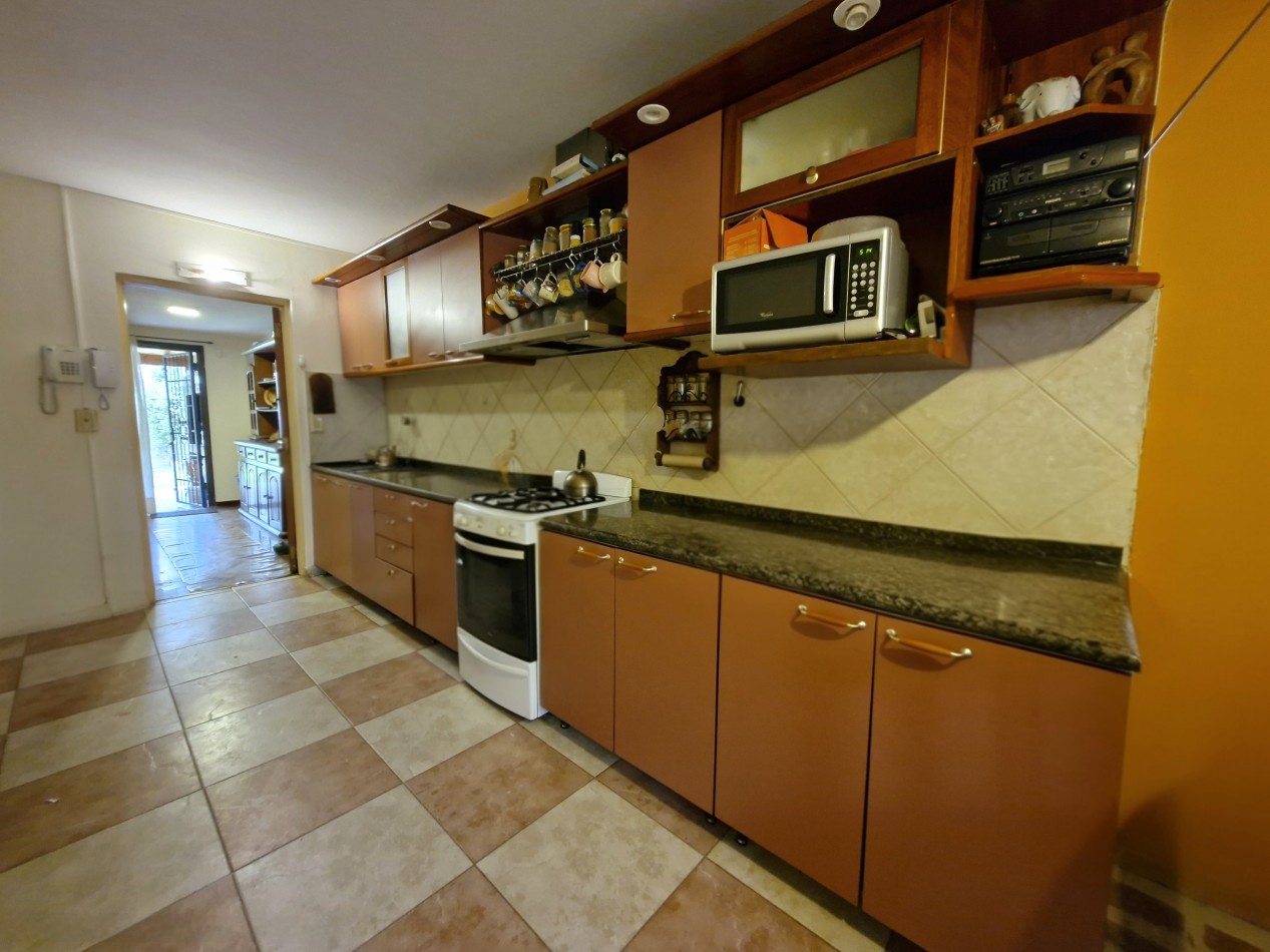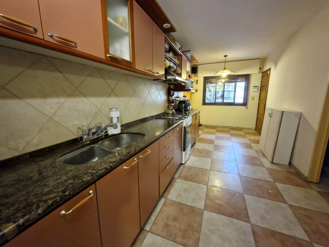 Planta Baja: Hall, oficina, living comedor, cocina comedor, lavadero, baño completo, galería semicubierta con parrilla, entrada/garaje semicubierto para 2 vehículos, y gran parque trasero con salida a calle Leguizamón.