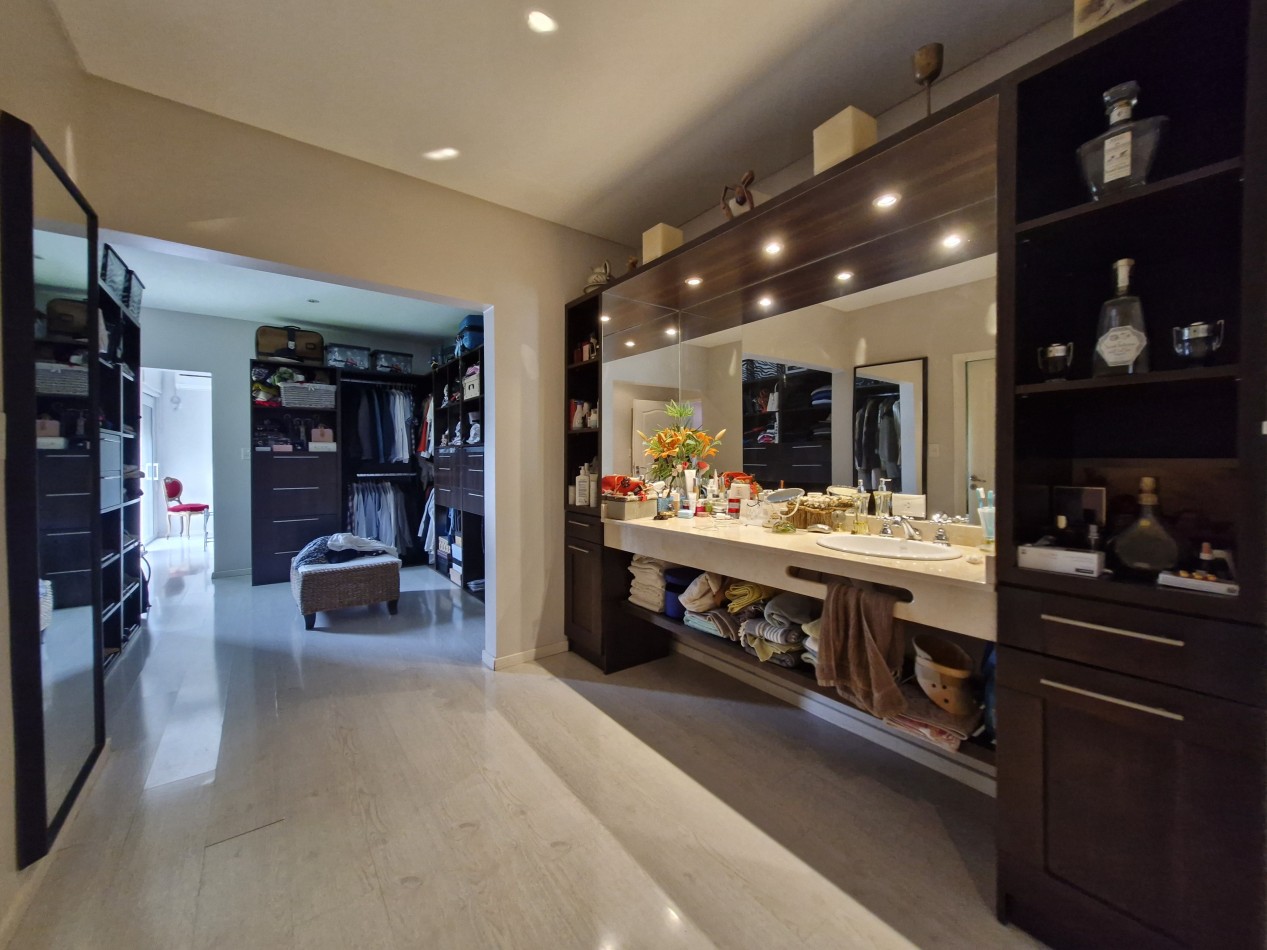 Planta Baja: Amplio living comedor de doble altura, cocina amoblada, patio seco, 1 dormitorio en suite con amplio vestidor y baño, toilette, garaje cubierto para dos vehículos, galería semicubierta con parrilla y patio parquizado con pileta.