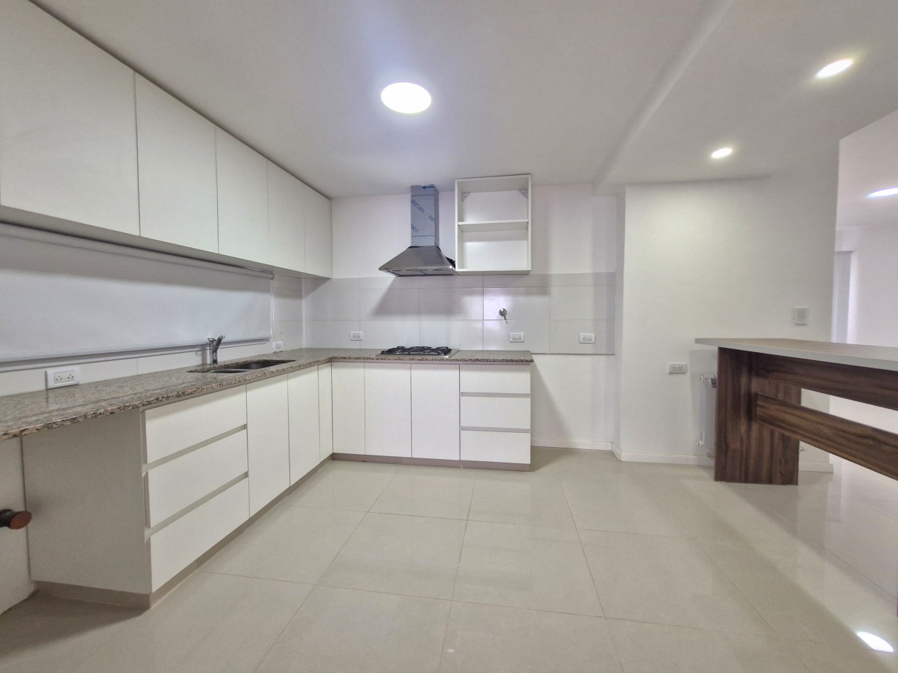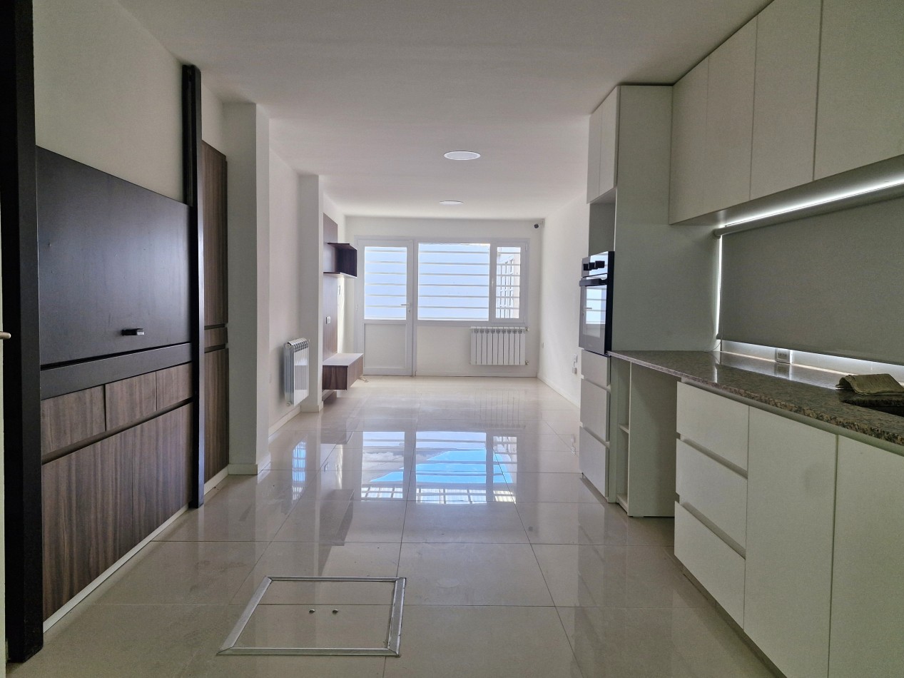 Hall de recepción, estudio living, comedor living amplio, toilette, cocina totalmente amoblada + quincho integrado con parrilla y estar, 3 dormitorios con placares (uno con baño en suite), baño completo. Jardin delantero y patio trasero con acceso de vehículos.