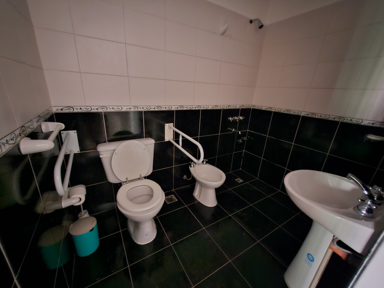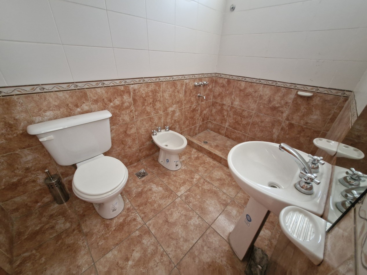 Casa principal, distribuida totalmente en planta baja. Living comedor amplio, cocina comedor, baño completo, 3 dormitorios con placares. Patio seco y amplio jardín. Garaje semicubierto.